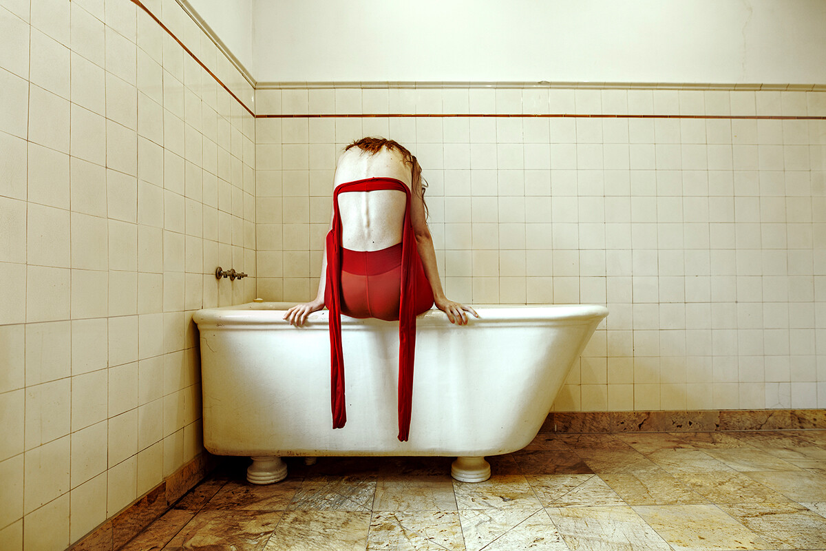Kamila J.Gruss: Jako mała dziewczynka miałam lampkę nocną, którą przywiozłyśmy z mamą z podroży po Ukrainie. Na lampce namalowane były kręcące się wokół własnej osi rybki. Tak więc gdy była zapalona, rybki pływały po ciemnych ścianach, zamieniając sypialnię w ocean. Wyobrażam sobie, że gdybym zrobiła więcej zdjęć, mogłabym umieścić tę serię na podobnej lampce. Fotografia ożyłaby, ponieważ po ścianach pokoju biegałyby dziewczyny. Wyobraźcie to sobie: jedna z nich tańczy, wbiega druga, popycha ją, a następnie obie wybiegają z łazienki. Być może dziewczyna jest sama, a wszystko to dzieje się wyłącznie w jej głowie. Sama siebie wpiera do szafy, sama siebie pogania. Wciąż na nowo i od nowa.